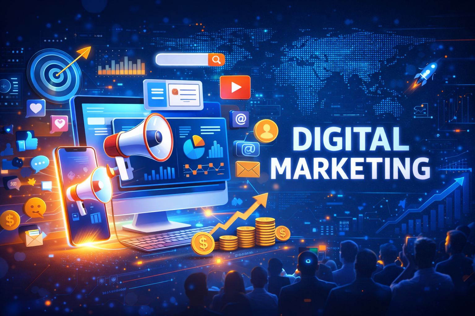 We provide Digital Marketing, Website Development, SEO, Social Media Handling, Paid Ads and Offline Advertising.